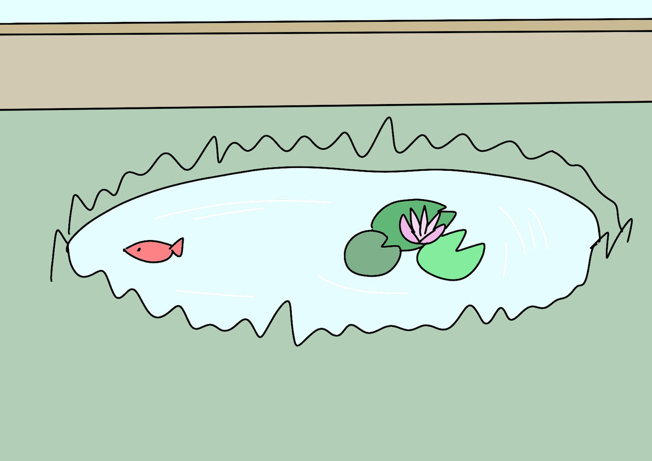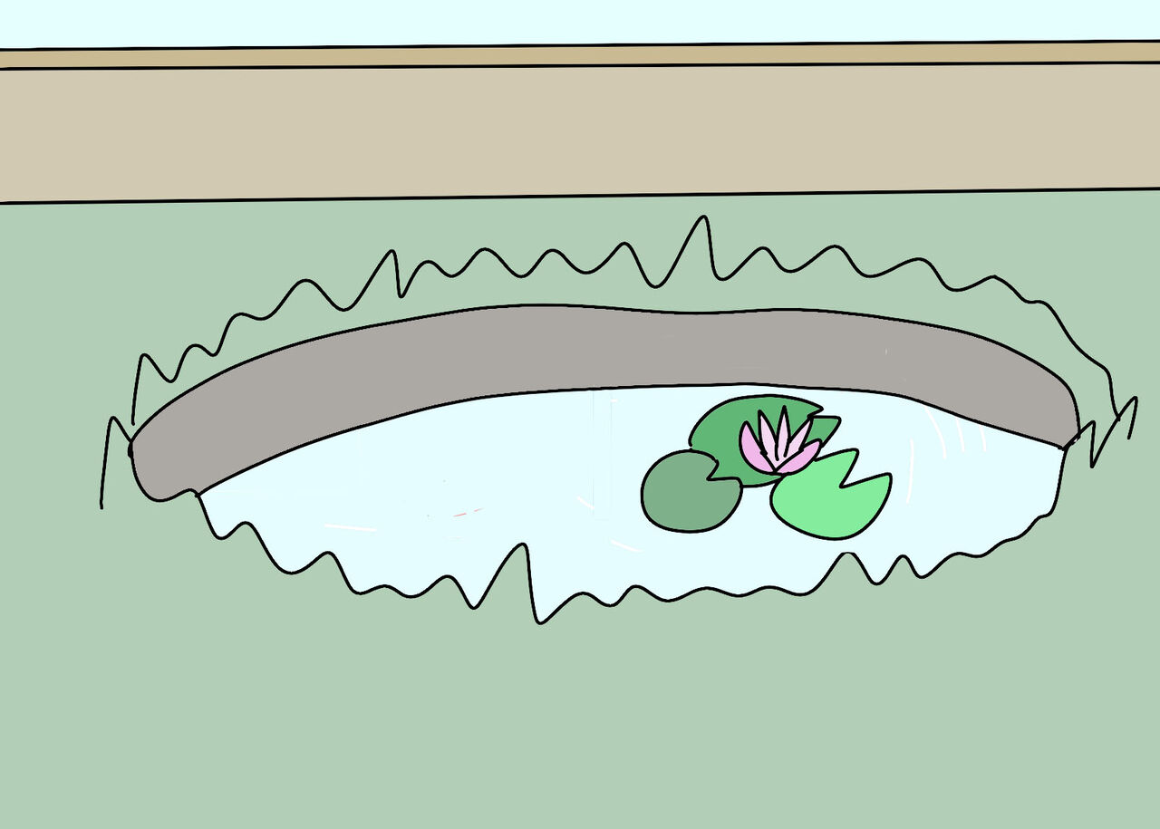 池が好きな義父が、20年ほど前に穴を掘って厚いビニール(池用)を張って池を作ったものです。
