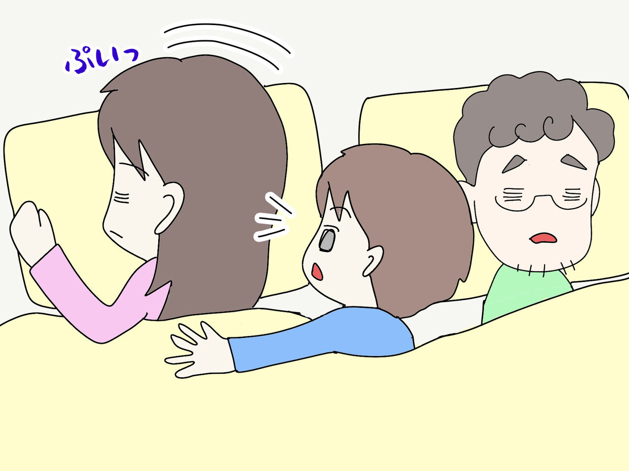 いつもはこの息子の猛攻撃で私も(夫も)起こされてしまうのですが、先日の朝は、私が「あまりにも眠かった」ので、息子に背を向けて眠ることにしました。