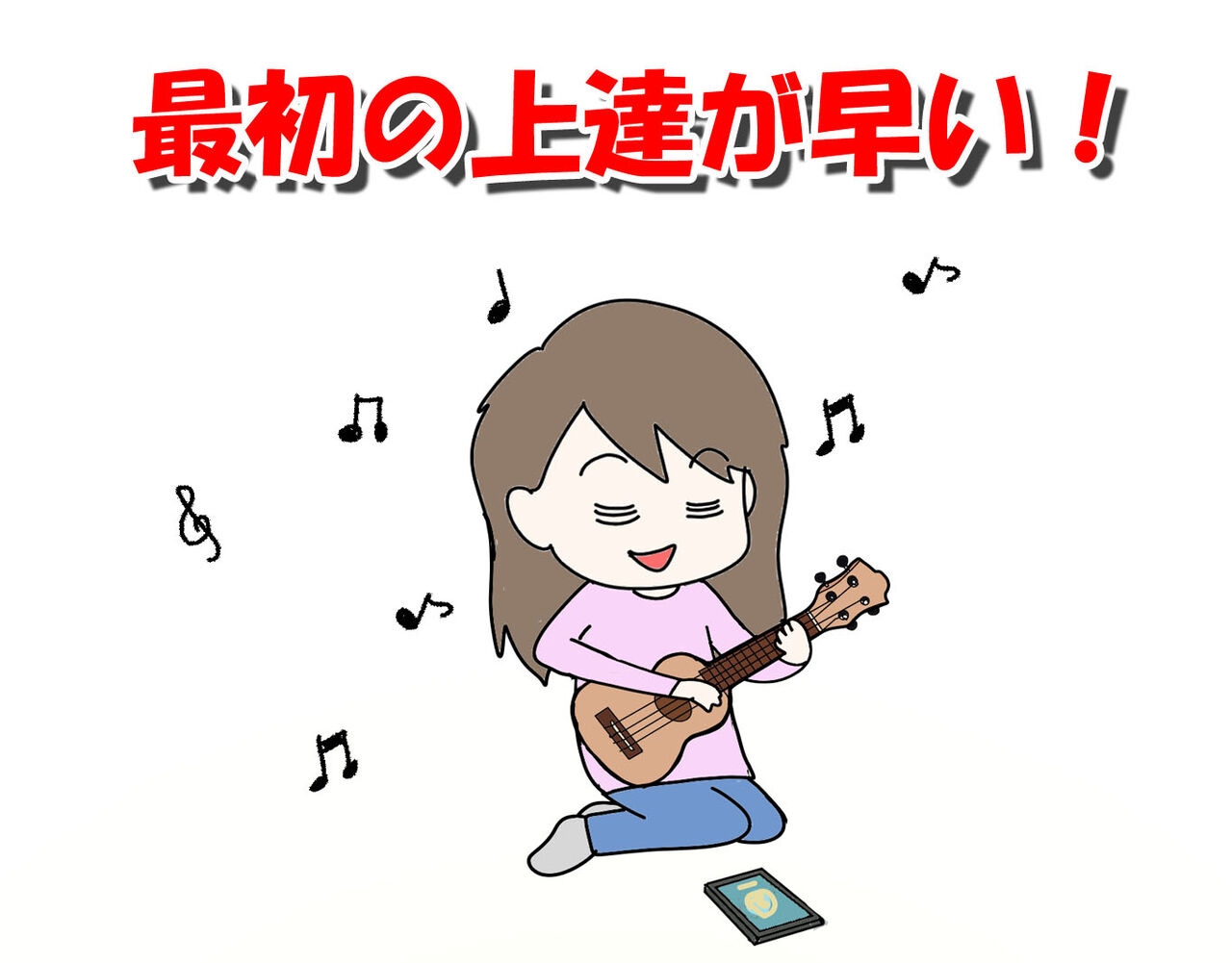 まずはじめに、「ウクレレがすごい」のは「(簡単な)曲が弾けるまでの必要な時間がめちゃめちゃ短い」ということが挙げられます。